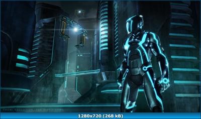 Разработчик: Propaganda Games Издатель: Disney Interactive Studios Модель распространения: розничная продажа Жанры: Action / 3D Платформы: PC, XBOX360, PS3 (в ролике тоже так написано) Об игре: Начало истории было положено в далеком 1982м году, когда на экраны вышел фильм Трон (Tron) [кинопоиск, imdb, релиз (DVDRip)]. Это был чуть ли не первый фильм с использованием компьютерной графики, а людей снимали на ч/б пленку, а потом раскрашивали вручную. Фильм рассказывал о суперкомьютере, который хотел поработить мир (тогда этот сюжет был еще не так избит как сейчас), и о человеке, который случайно оцифровался и попал внутрь корпоративной сети в качестве "обычной" программы с самосознанием. Так же фильм запомнился совершенно оригинальными гонками на мотоциклах, которые при езде возводят за собой стену (задача - заставить противника врезаться в нее или другие препятствия). В 2003м году выходит игра TRON2.0 (релиз (пиратка, русский), рецензия на ag.ru), которая продолжает эту историю. Теперь главный герой - сын основного персонажа из фильма. Он тоже превращается в программу, и борется как и антивирусами, так и с вирусами, добираясь до главного злодея, путешествуя с устройства на устройство (даже не КПК залезает). Гонки на мотоциклах тоже были как обязательный элемент, так же доступен сетевой режим.